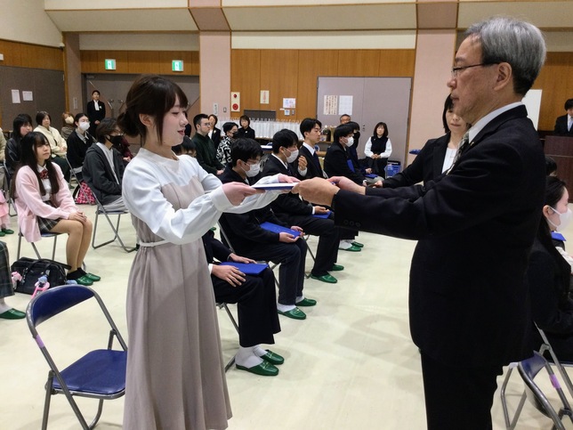 皆さんが、卒業証書を一人ひとり受け取る姿を見ていると、一人ひとりとの思い出のエピソードが頭を駆け巡っています。3年前と比べると、皆さんがたくましく成長し、しっかりと前を向いている姿を見て、本当に嬉しく思います。