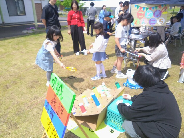 2026年4月25日(土)に、御嵩町で開催された「あゆみ館まつり」にこども縁日を出店しました。あゆみ館さんは、NPO法人ささゆりが運営する障がい福祉施設で、毎年、明誠のクリスマス会で菓子パン販売をお願いしており、そのご縁で今回出店させていただきました。